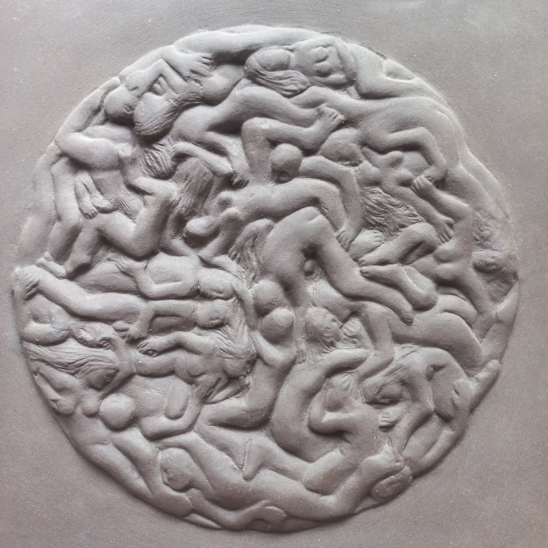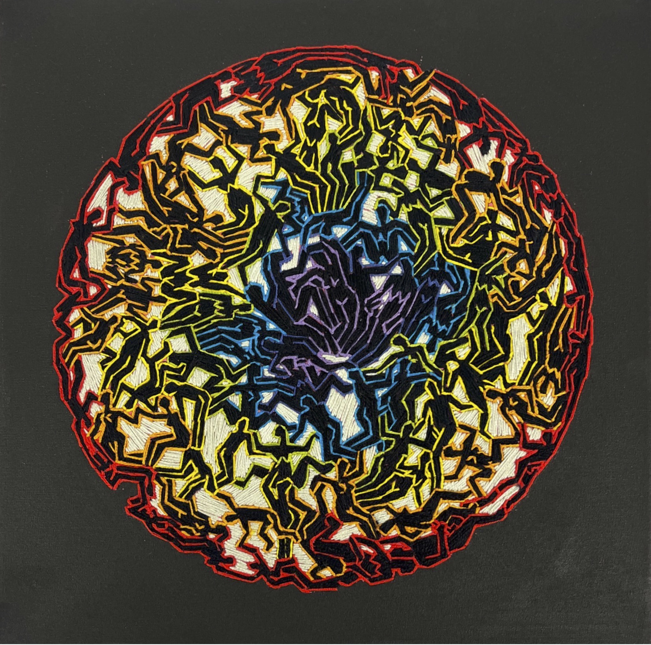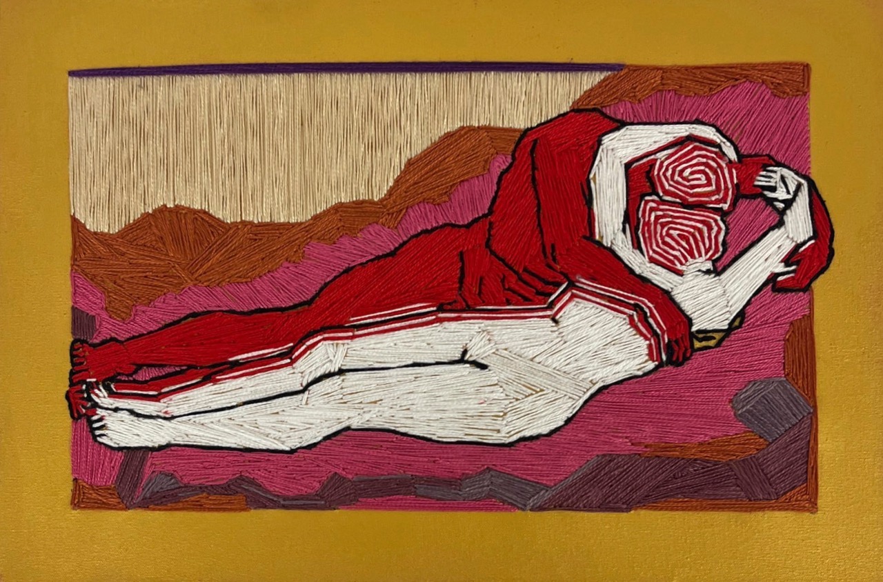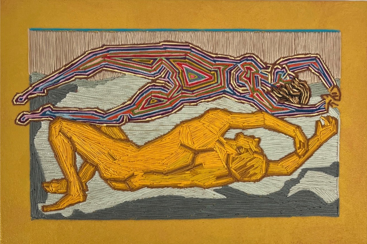 Fernando de la Rocque is a Brazilian artist who graduated in sculpture from the University of Fine Arts in Rio de Janeiro in 2004. He has created an authentic art form, using several media: drawing, painting, embroidery, porcelain tiles and sculpture. His pictorial vocabulary incorporates joyful, colorful human figures and references to pleasure through sensual scenes. The use of hallucinogenic smoke is present as a creative medium in the artist’s psychedelic work. This has given rise to much debate.
